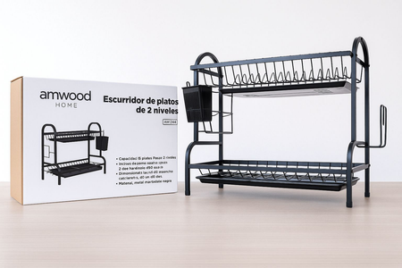 SECAPLATOS 2 PISOS ACERO NEGRO
