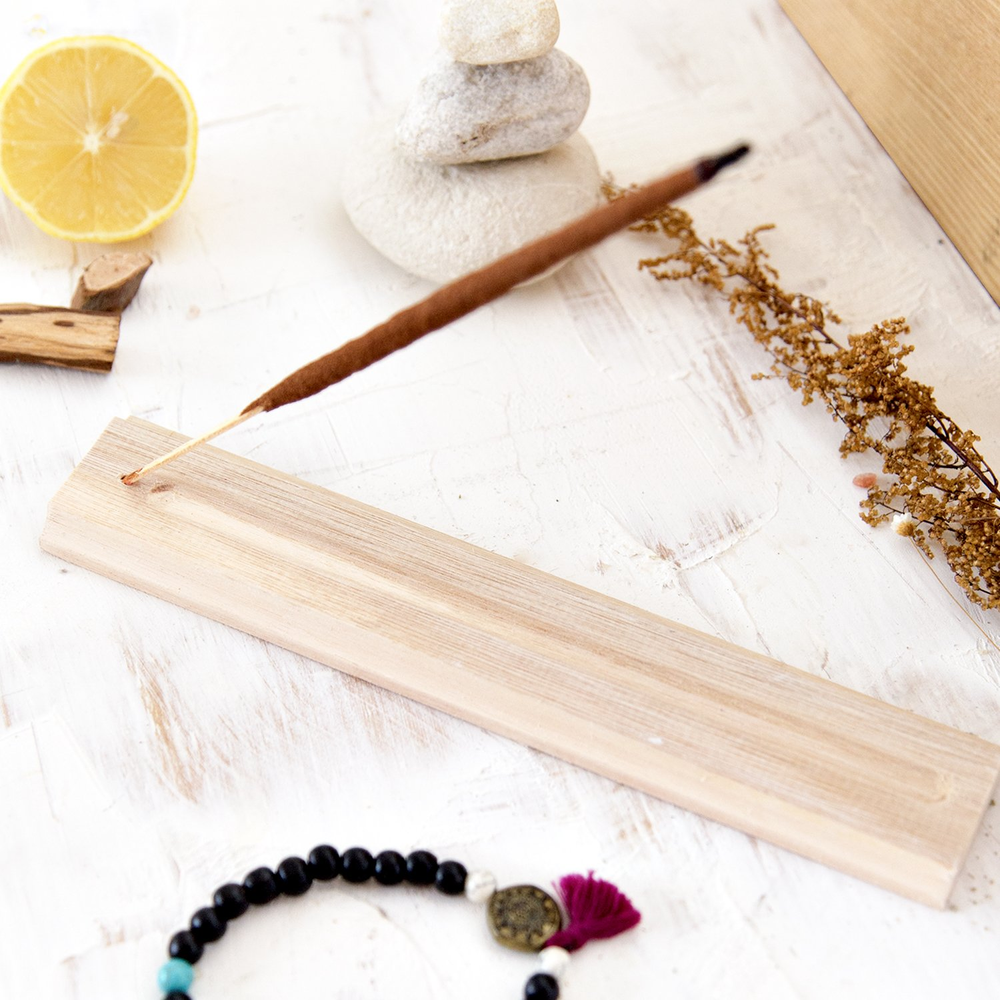 Porta sahumerios artesanales confeccionados en madera dura de eucalipto. Con ranura para la ceniza. Viene con un orificio para colocar el sahumerio.